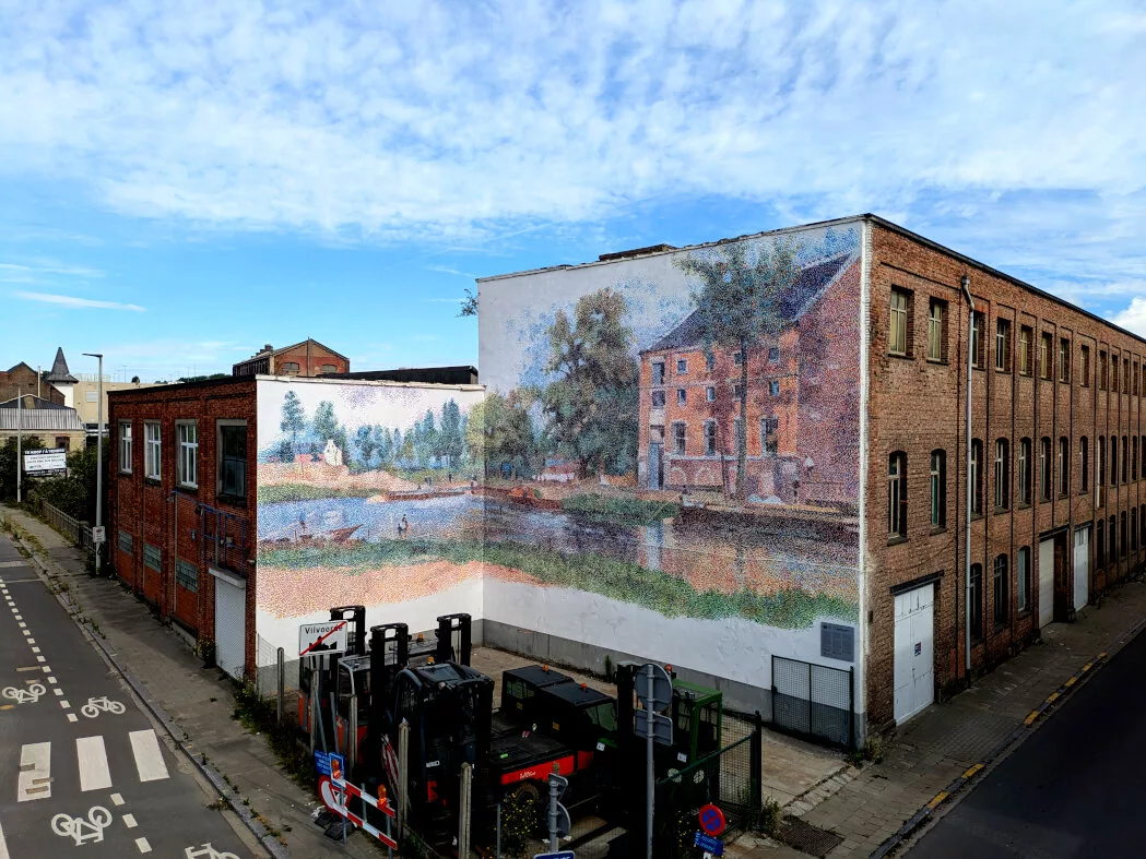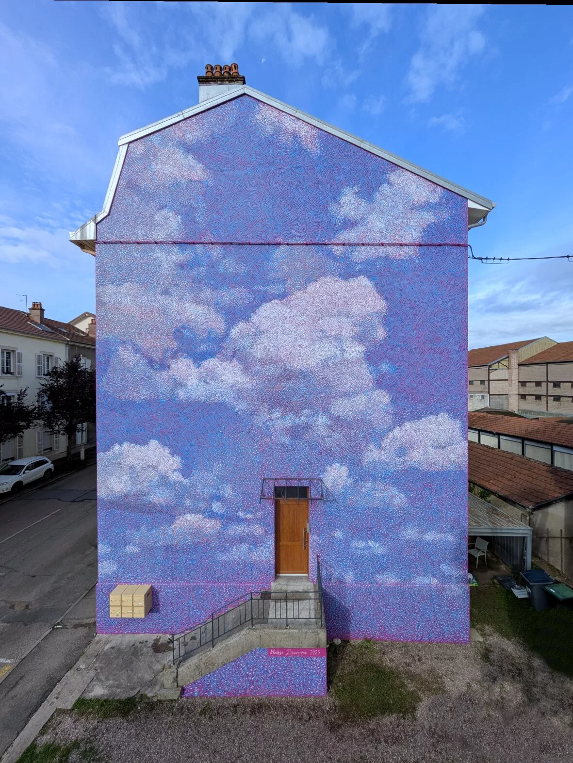 Très vite elle maîtrise de nombreuses techniques, de la peinture à l’huile jusqu’à la bombe aérosol. Mais son choix va bientôt se cristalliser autour d’une manière de dessiner, qu’elle découvre par manque de couleurs et qui est celle du mélange optique. Alliant rigueur du dessin et connaissance chromatique, chaque œuvre crée ainsi, sur petit ou géant format est une véritable prouesse. Cette technique qu’elle développe, elle l’abordera par une succession de hachures colorées qui finiront par se combiner dans l’œil du spectateur, proposant plusieurs niveaux de lecture. De loin, une couleur vibrante et lumineuse s’observe et c’est en se rapprochant jusque dans le détail que la palette se divise pour dévoiler chaque couleur qui la compose.