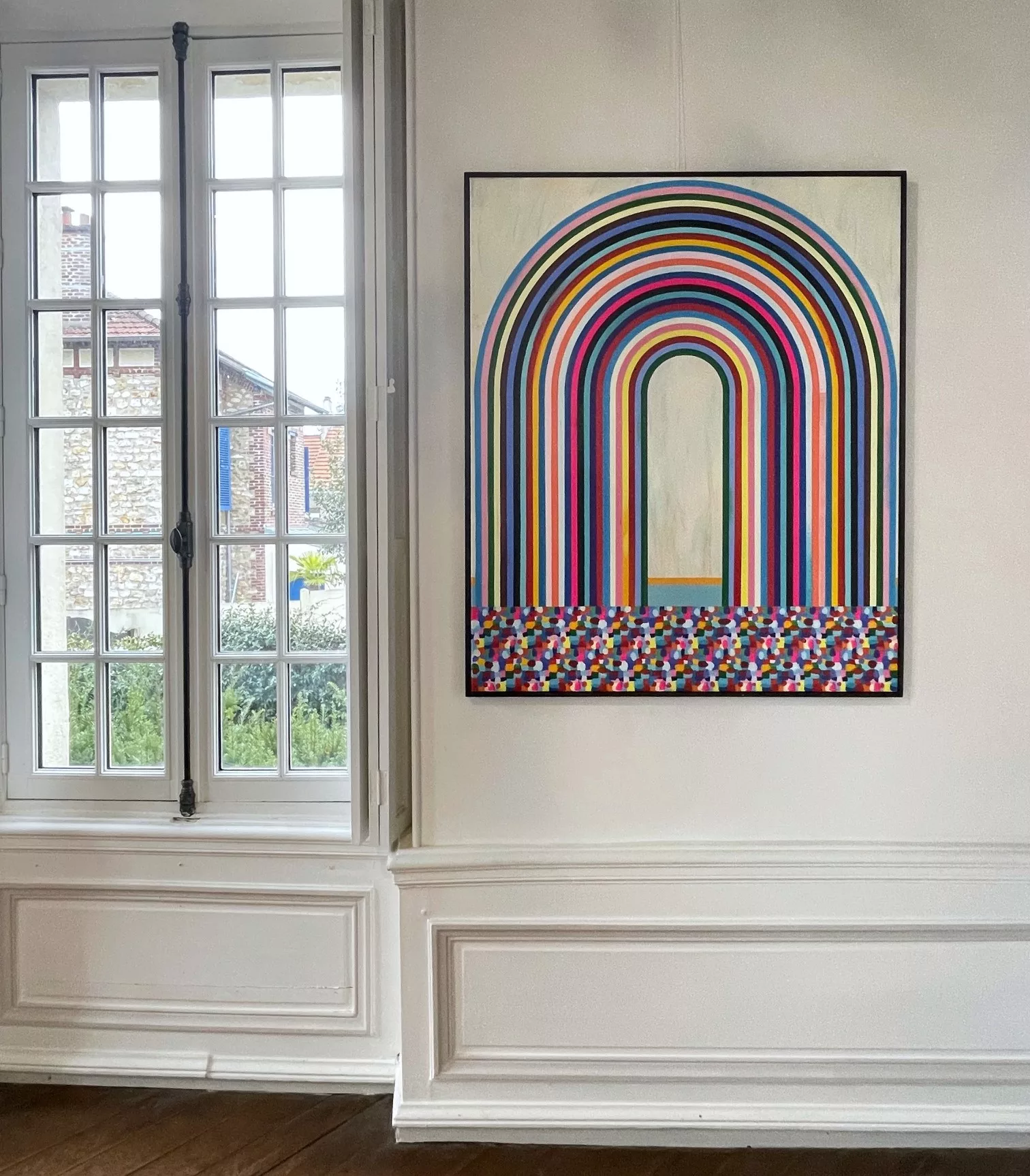 Le parcours de Matt Dosa a commencé par le graffiti, à l’ adolescence. Au fil du temps, son style de graffiti a évolué, passant des approches traditionnelles du lettrage et des personnages de dessins animés à des styles plus abstraits. Son expérience du graffiti l’amène à réfléchir à la manière dont les petites peintures abstraites pourraient être transposées en peintures murales. Aujourd’hui, il crée d’immenses œuvres abstraites à l’extérieur, ainsi que des peintures plus petites en atelier.